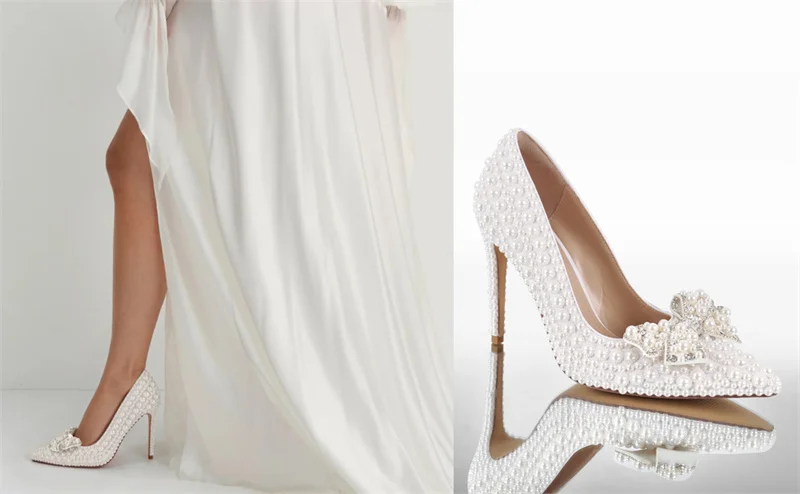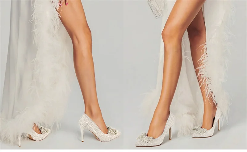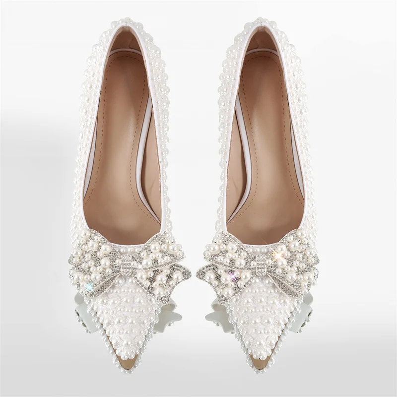 White Bridal Pumps Slip-On Pearl Crystal 11CM